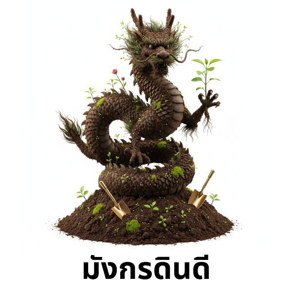 ภาพนี้รวมองค์ประกอบมงคลตามหลักฮวงจุ้ยและคติความเชื่อไทย-จีน ที่สำคัญต่อชาวไร่ชาวสวน: